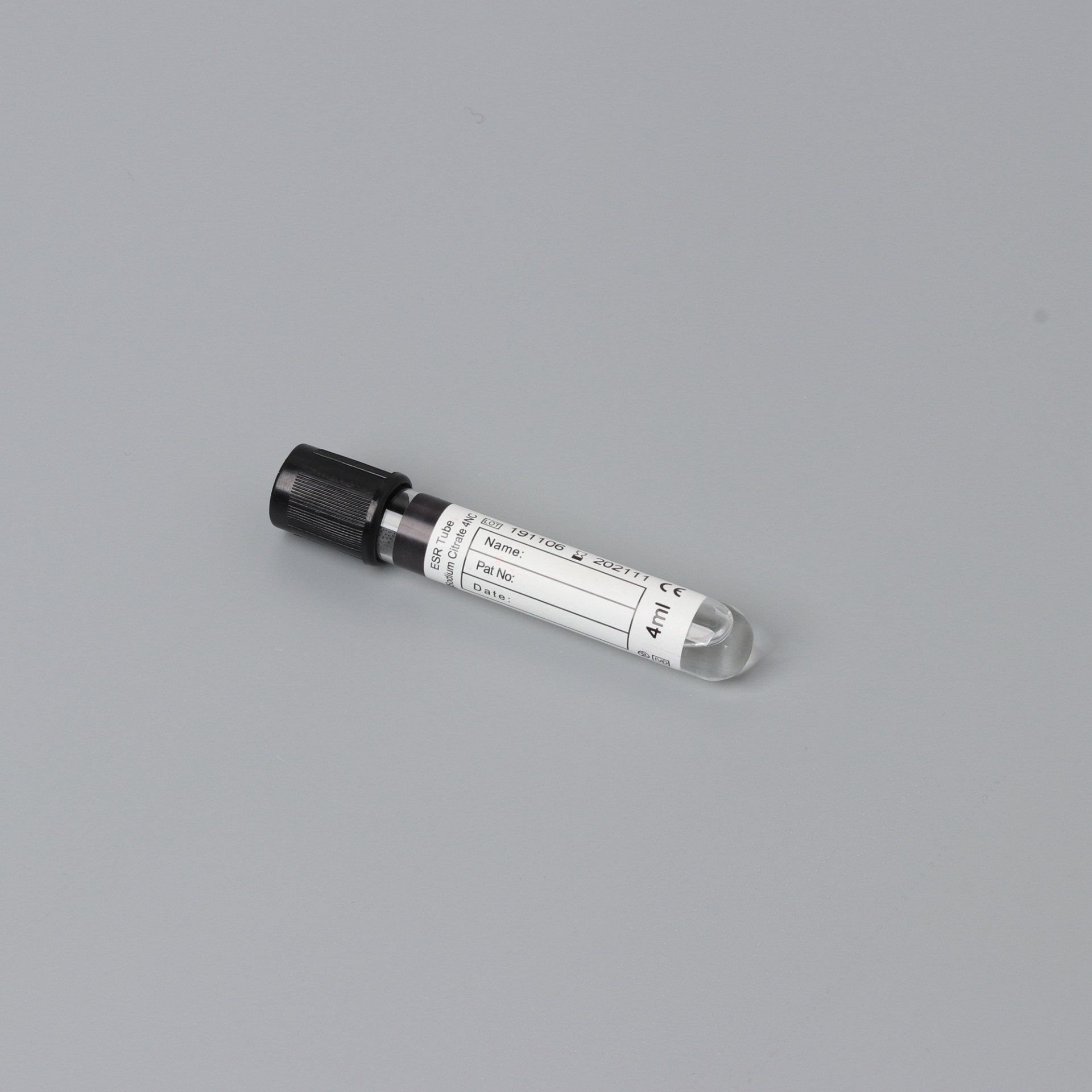 黑头管采用 0.129mol/L 柠 檬酸钠缓冲体系对血液标本进行抗凝 , 用于“魏氏沉 降法”进行血液沉降速率检测。抗凝剂与血液的体积比为 1:4 。包括提供直接标本的动态血沉管和需要标本转装的 75mm 短管。动态血沉管可在采血后直接上架读数或应用于动态血沉仪。 Black cap tubes, with 0.129mol/L sodium citrate buffer systems to carry out anticoagulation on blood specimen, are used for the testing blood sedimentation rate by Westergern method. The volume ratio between anticoagulant and blood is 1:4. They cover the dynamic blood sedimentation tube directly offering specimen and 75mm short tubes needing specimen transfer. Dynamic blood sedimentation tube may read directly on the frame after blood collection, or be used in blood sedimentation unit